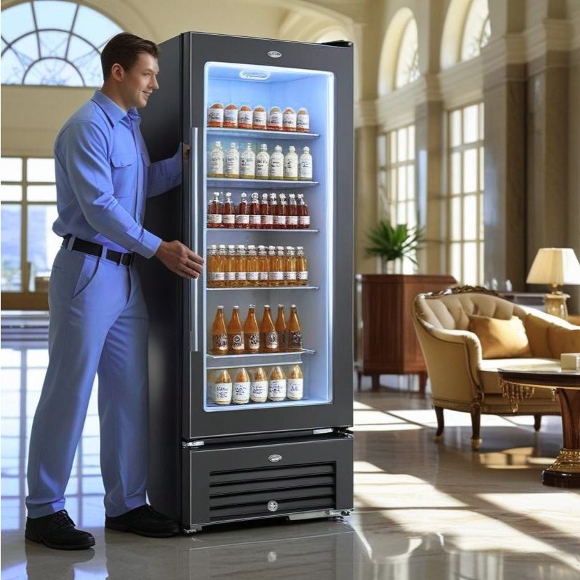Maskinen er designet med omtrent samme størrelse som et vanlig kjøleskap, noe som gjør den til et ideelt valg for ulike omgivelser — den passer lett inn i det fleste tilgjengelige områder. Den kompakte størrelsen gjør at den kan plasseres i treningssentre, hotellobbyer, venterom på sykehus osv.